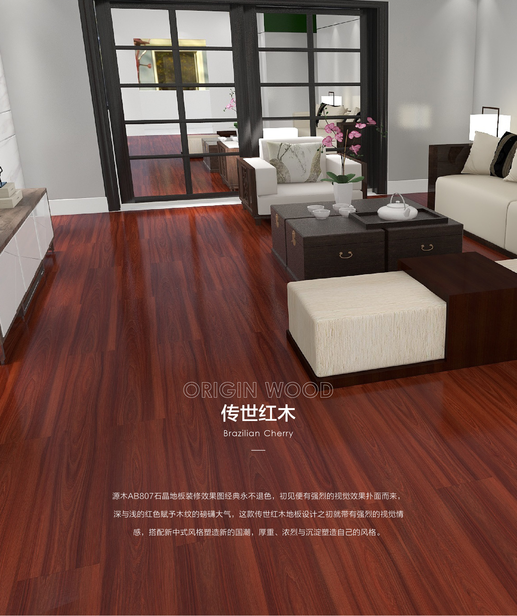 源木AB807石晶地板装修效果图经典永不退色,初见便有强烈的视觉效果扑面而来,深与浅的红色赋予木纹的磅礴大气,这款传世红木地板设计之初就带有强烈的视觉情感,搭配新中式风格塑造新的国潮,厚重、浓烈与沉淀塑造自己的风格。
