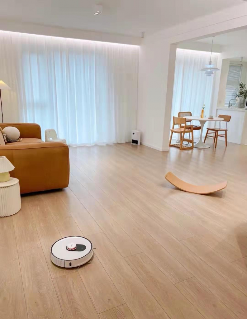 如果家里用扫地机器人,搞不好还会因为扫地机器人下面的轮滑将纯实木地板压出坑来,所以说,稍不细心,表面就会被破坏,影响到使用寿命和美观性。