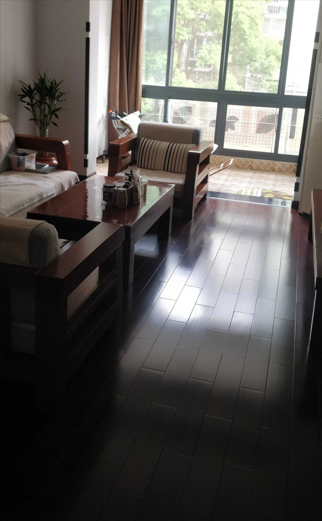 其次,非常难维护。一旦实木地板铺装完成后,就要非常细心地维护,平时阳光晒到的位置也非常容易褪色,也因此要常年将纱帘拉上。