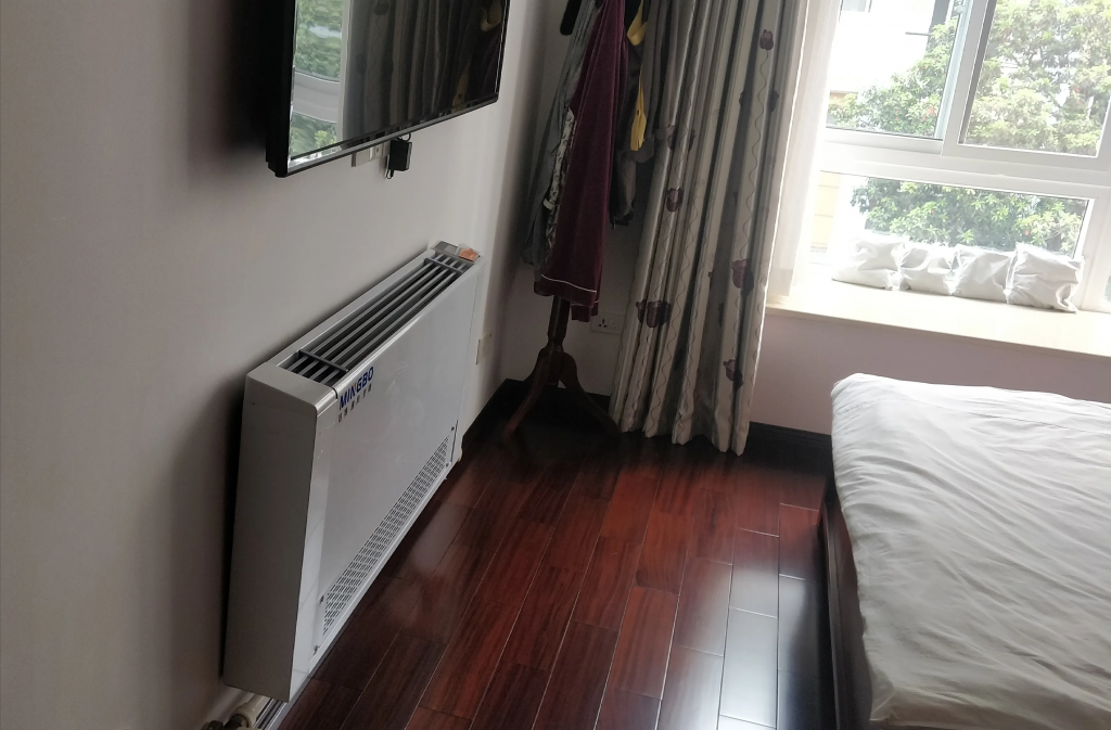这样的情况下,家具柜体的颜色最好和地板色彩深浅一致,或者浅于地板色彩,如果颜色反差太大了,会有点不和谐。