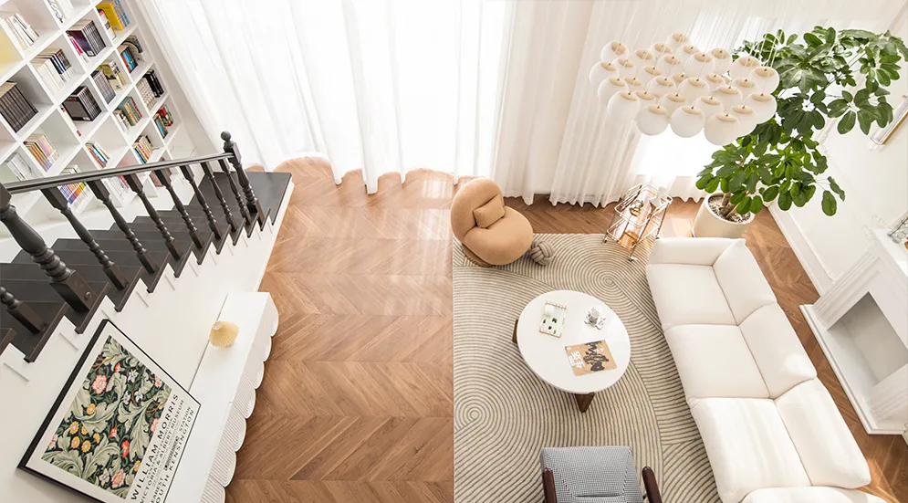 北欧风格装修:原木色、浅黄色、白色地板(最好带点结疤,会显色自然有腔调);
