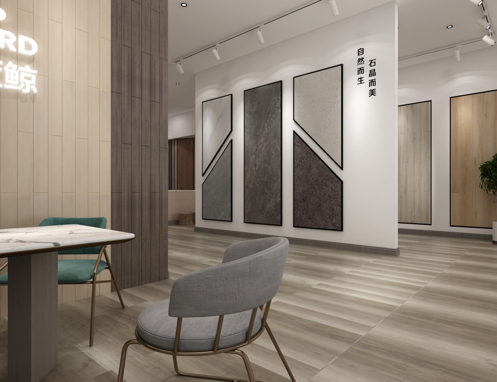 小蓝鲸石晶地板墙板建议您采用以下的专卖店装修设计方案: